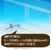 ・鍵付の場合ケース内中央レール内側に40mm幅の透明アクリル板がつきます。