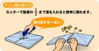 ●カッターで板厚の1/3まで溝を入れると簡単に割れます。
